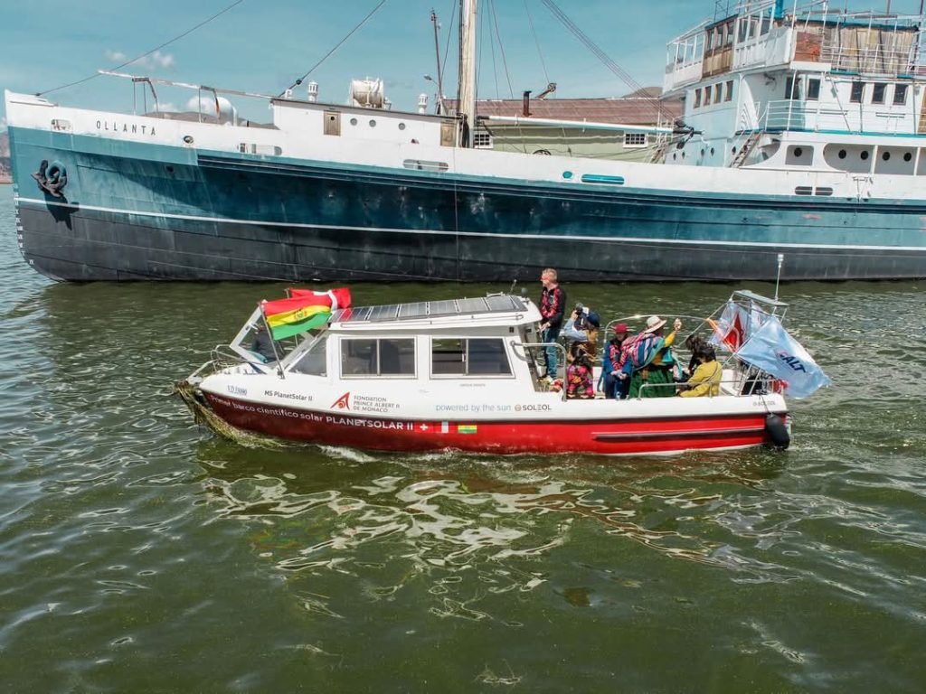 La Paz, Bolivia/QAMASA Digital. – Con el objetivo de fortalecer la cooperación bilateral y la protección ambiental del Lago Titicaca, el Ministerio de Relaciones Exteriores participó, el pasado 25 de abril, en la ceremonia de donación de la embarcación de investigación que funciona con energía solar “PlanetSolar II”. El acto se llevó a cabo en el muelle de la ciudad de Puno, Perú, fue organizado y gestionado por la Autoridad Binacional Autónoma del Lago Titicaca, río Desaguadero, lago Poopó y salar de Coipasa (ALT).).