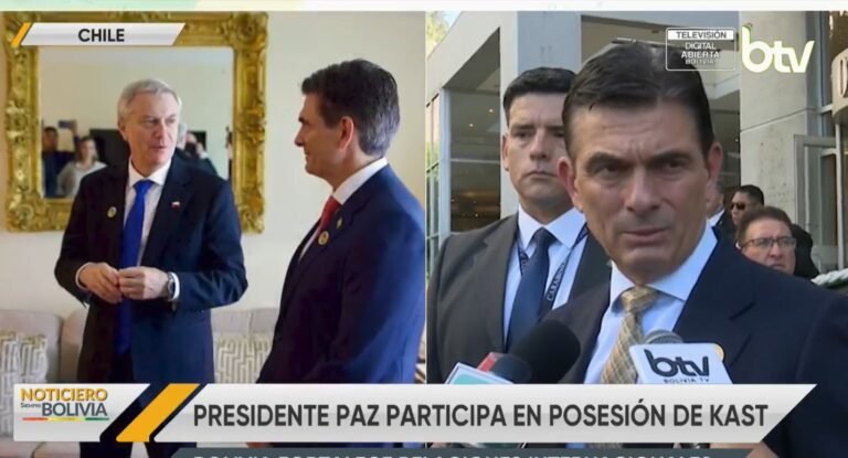 La presencia de Paz en Chile se da en el marco de la ceremonia en la que Kast asumirá oficialmente la presidencia de este vecino país, en un evento que reúne a autoridades y delegaciones internacionales y marca el inicio de una nueva etapa política.