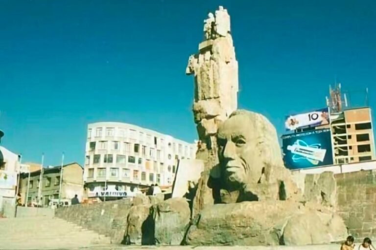 La Paz, Bolivia /QAMASA Digital. – El Concejal Javier Escalier denunció la pérdida y el abandono de una de las obras escultóricas más conocidas de La Paz: el monumento a Andrés de Santa Cruz, creado por el artista Ted Carrasco y compuesto originalmente por la Cabeza del Mcal. de Zepita y la Pukara.