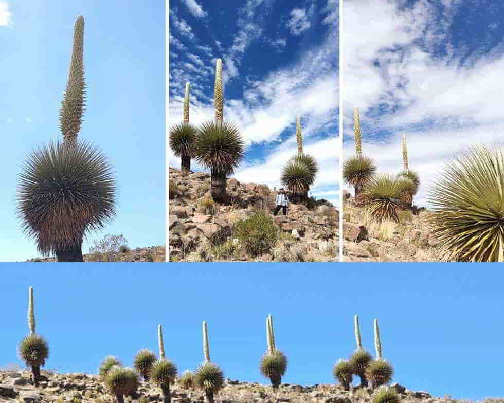 “La maravilla andina se encuentra en plena floración después de 80 a 100 años de vida. Siete hermosos ejemplares florecen en la soledad andina de nuestro territorio. Ver ese milagro de la naturaleza en Bolivia es una visión espectacular porque quedará grabado en la retina de quien pueda apreciar el suceso que ofrece la naturaleza”, afirmó.