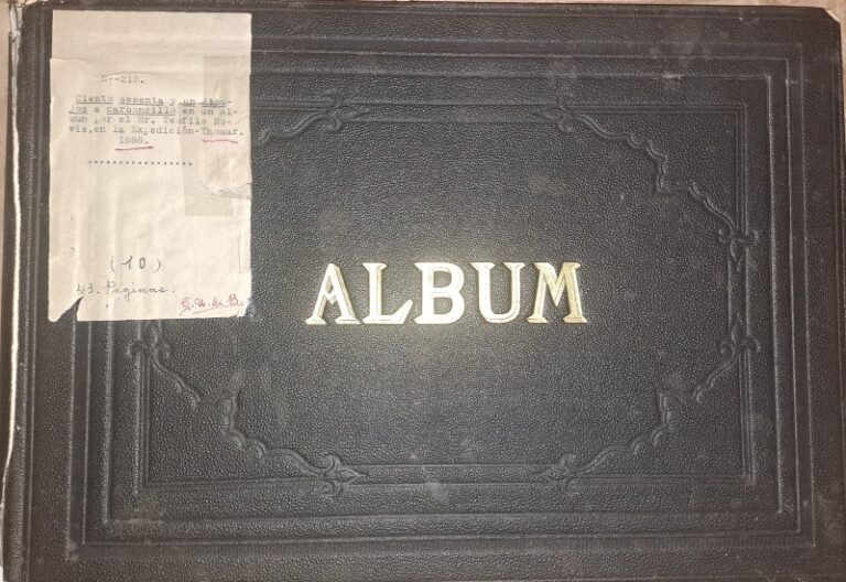 Se trata, pues, de un álbum en formato de papel hecho a mano, con celulosa. Posee cubiertas de color café oscuro, letras doradas en la tapa a modo de título, caligrafía original de la época y bordes de folios recubiertos con pan de oro.