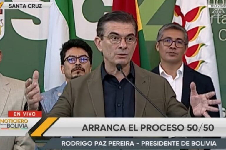 “Informarle al pueblo cruceño que hoy, en el gabinete instalado en Santa Cruz, vamos a iniciar el proceso del 50–50”, afirmó el jefe de Estado en conferencia de prensa, acompañado de autoridades nacionales y locales.