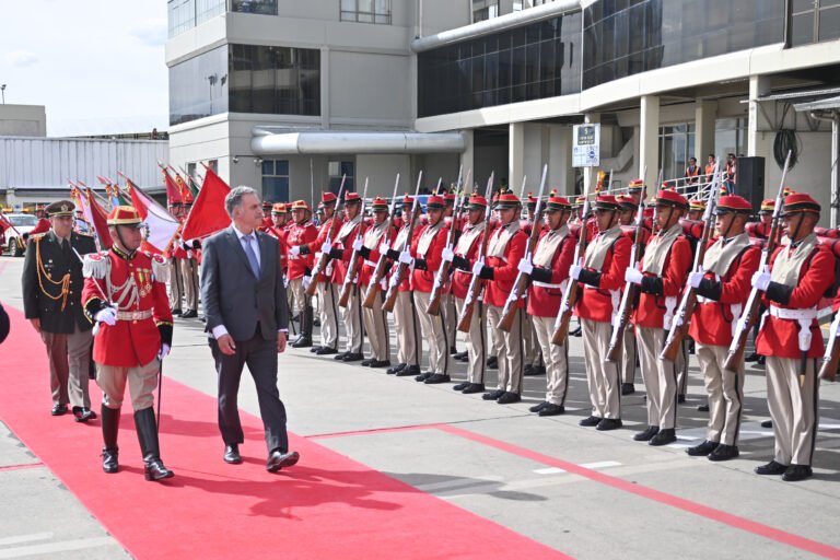 La Paz, Bolivia/QAMASA Digital. – Con honores militares fue recibido este viernes, el presidente de Uruguay, Yamandú Orsi, a su arribo al Aeropuerto Internacional de El Alto, municipio vecino de La Paz, para participar este sábado del acto de posesión de Rodrigo Paz como nuevo mandatario de Bolivia.