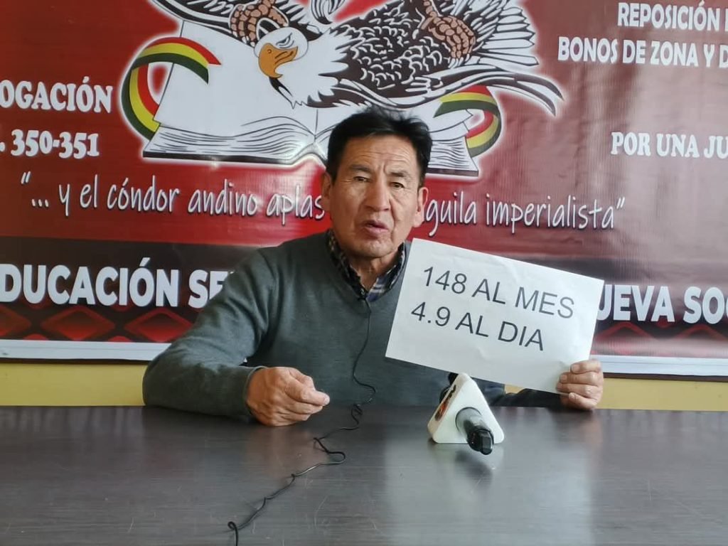 La Paz, Bolivia/QAMASA Digital. – El magisterio urbano paceño rechaza el incremento del 5% al haber básico destinado al sector educativo, José Luis Álvarez, dirigente del sector, señaló que el aumento es insuficiente y que el ajuste salarial debería estar basado en el costo real de la canasta familiar. De acuerdo con sus cálculos, los maestros recibirán apenas bs. 148 adicionales al mes.
