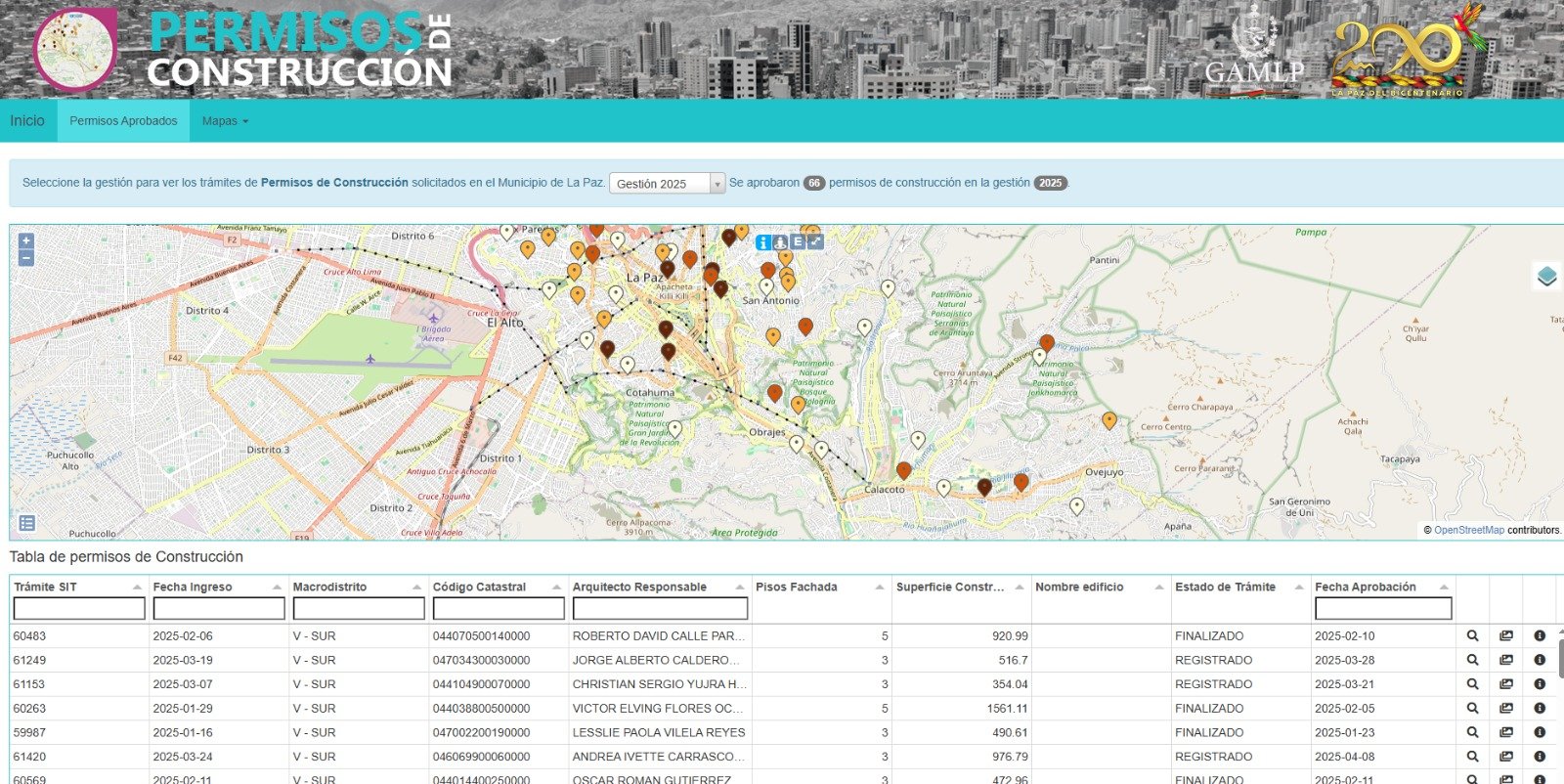 La Paz, Bolivia/QAMASA Digital.– En un esfuerzo por modernizar y transparentar los procesos de construcción en la ciudad, el Gobierno Autónomo Municipal de La Paz (GAMLP) desarrolló un innovador Mapa de Permisos de Construcción, una herramienta digital que permite a arquitectos y propietarios registrar y monitorear sus solicitudes de permisos de manera eficiente.
