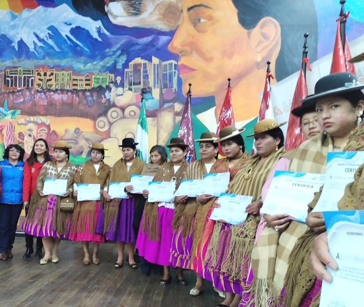 “Desde 2022 hasta la fecha han sido más de 4.000 mujeres beneficiadas con estos cursos que han obtenido su certificación y en esta gestión estamos trabajando de la mano del Ministerio de Educación para que sus certificados sean avalados por el mismo”, explica la jefa de la Unidad de la Mujer, Marylin Ayaviri.