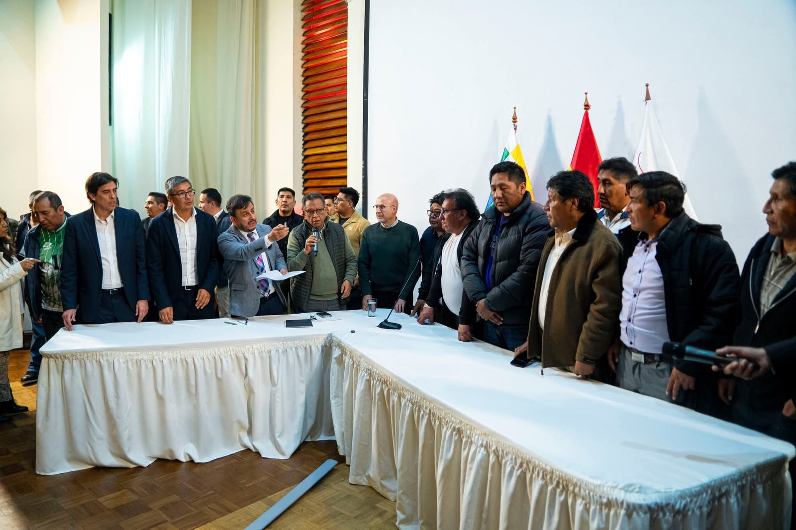 La Paz, Bolivia /QAMASA Digital, – El ministro de Gobierno, Dr. Marco Antonio Oviedo, lideró la mesa de diálogo instalada con la dirigencia del transporte sindicalizado paceño, escenario en el que el Gobierno Nacional y el sector de los choferes alcanzaron un fructífero acuerdo que permitió la suspensión inmediata de las movilizaciones, tras una jornada de diálogo encaminada en atender sus principales demandas.
