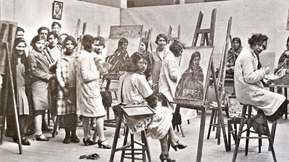 La fundación en 1926 de la Academia Nacional de Bellas Artes (ANBA) de La Paz repercutió en la emergencia de una cantidad significativa de mujeres artistas. Precisamente a la primera generación de alumnas de esta institución pertenecieron Marina Núñez del Prado, Rebeca de la Barra, Juanita Landívar y Yolanda Bedregal, entre otras, consignadas por la misma Núñez del Prado en sus memorias publicadas en 1973. Se trata del primer grupo de artistas tituladas del país, quienes desde principios de la década de 1930 comenzaron a destacar en el medio cultural local exponiendo sus obras y asumiendo tareas de docencia en la ANBA e instituciones educativas iniciales o secundarias. La más destacada de este grupo fue, sin lugar a duda, Núñez del Prado, quien en 1930 se convirtió en la primera docente mujer de la ANBA asumiendo por concurso de méritos la cátedra de Escultura y Anatomía Artística y quien desde mediados de la misma década comenzó a exponer su obra en museos y galerías de Argentina, Uruguay, Perú, EEUU y otros países. Otra figura destacada fue De La Barra, también docente de la ANBA quien, según Mesa y Gisbert, se convirtió en la primera mujer restauradora del país trabajando en la década 1940 junto a Jorge de la Reza y Luis Luksic en la restauración de los cuadros virreinales que conformaron la Pinacoteca “Melchor Pérez Holguín”, colección base del Museo Nacional de Arte.