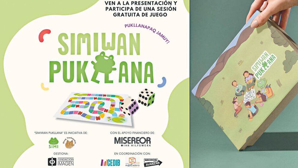 “Simiwan Pukllana se trata de un juego de mesa divertido cuyo nombre significa literalmente ‘juguemos con la lengua’ y pretende poner a prueba los conocimientos de las y los jugadores sobre la lengua quechua relacionada con comida, colores, topónimos, números y demás. Puede ser jugado en familia, con amigos y hasta en clase, en equipos de al menos dos personas mínimo y ocho máximo. Los participantes avanzan en el tablero respondiendo preguntas y aceptando retos lingüísticos”, señala Micaela León, miembro de la aplicación Simi.