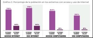 En Bolivia, por ejemplo, solo un 2% de las mujeres que habitan en zonas rurales afirman tener acceso a computadoras, según el documento Acceso a Internet e Inclusión Digital, elaborado por la organización Internet Bolivia (2024). Estas cifras reflejan que, si bien la brecha digital de género en términos generales es reducida, persisten desigualdades notables al considerar factores como la ubicación geográfica y el nivel socioeconómico. Las mujeres en áreas rurales y con menores ingresos enfrentan mayores desafíos para acceder a las tecnologías de la información y comunicación. Ver fuente