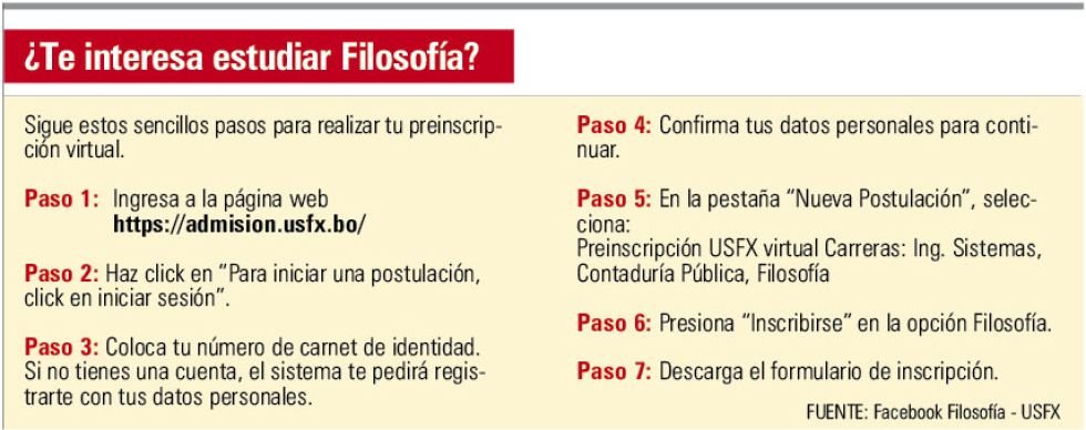 Preinscripción USFX virtual Carreras: Ing. Sistemas, Contaduría Pública, Filosofía