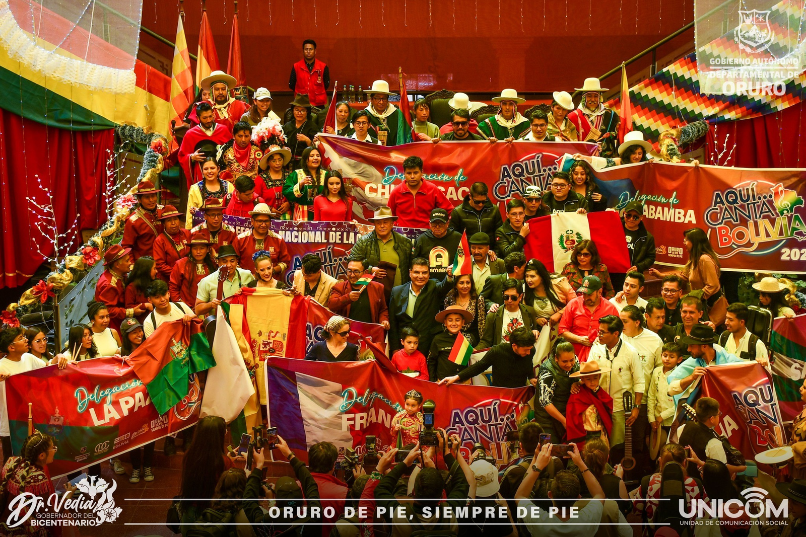 “Desde la tierra del amor y del carnaval, de la capital del folclore de Bolivia, les damos una gran bienvenida a todos y les deseamos éxito en su participación, que ganen los mejores”, proclamó el gobernador de Oruro, Johnny Vedia.